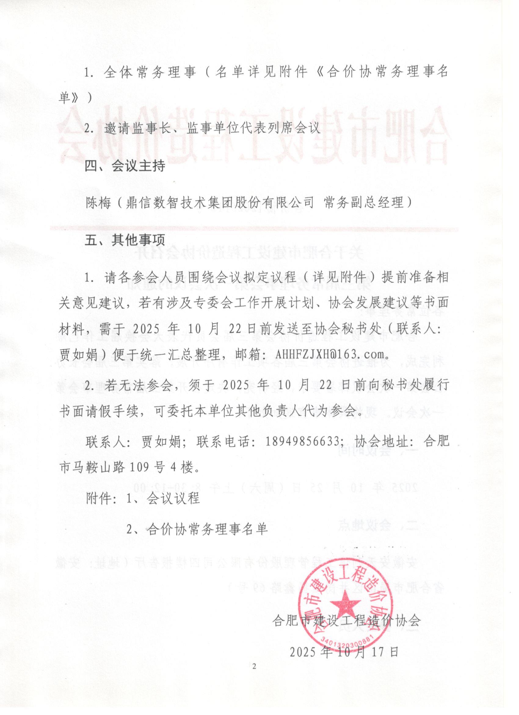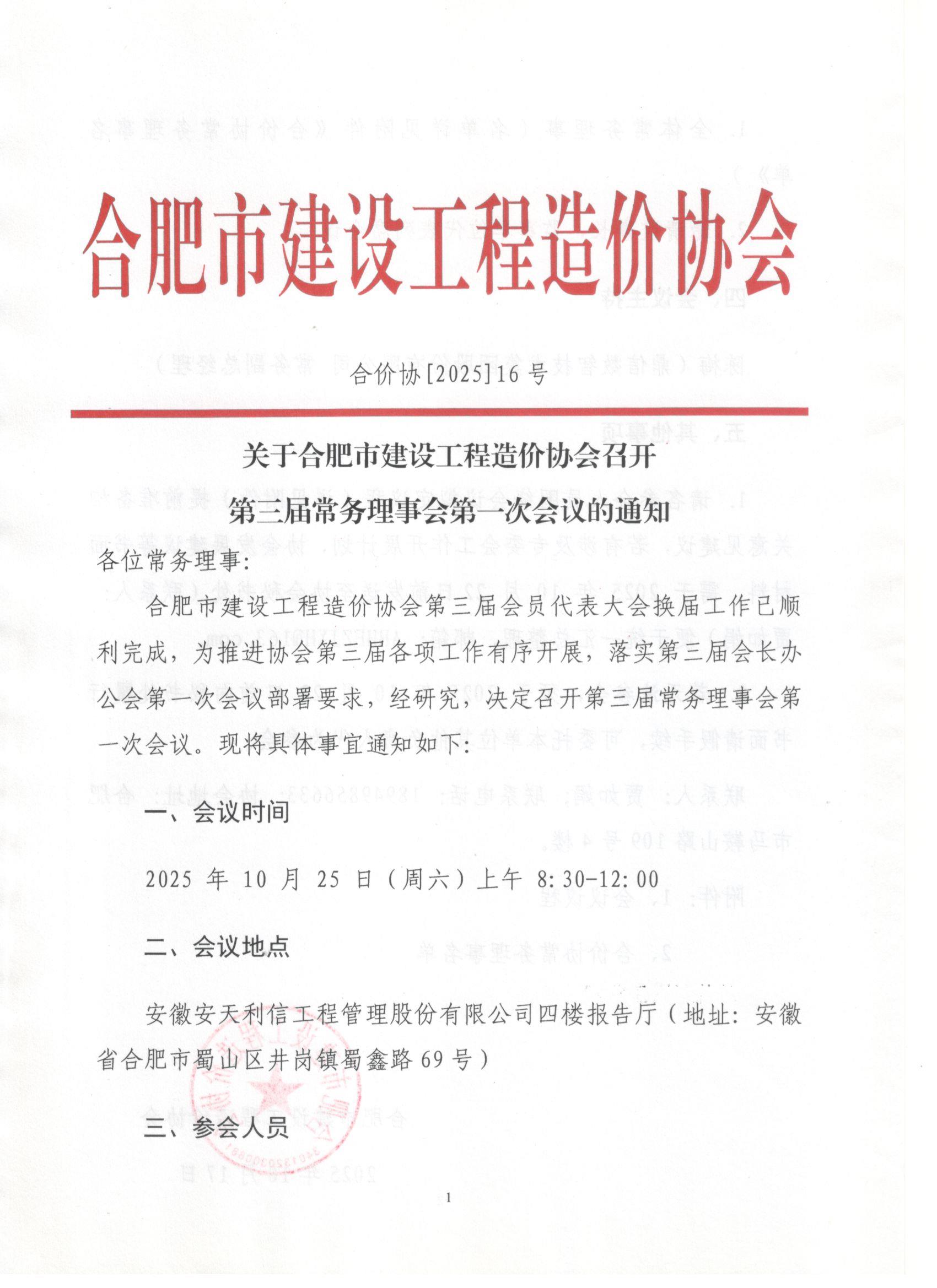 关于合肥市建设工程造价协会召开第三届常务理事会第一次会议的通知