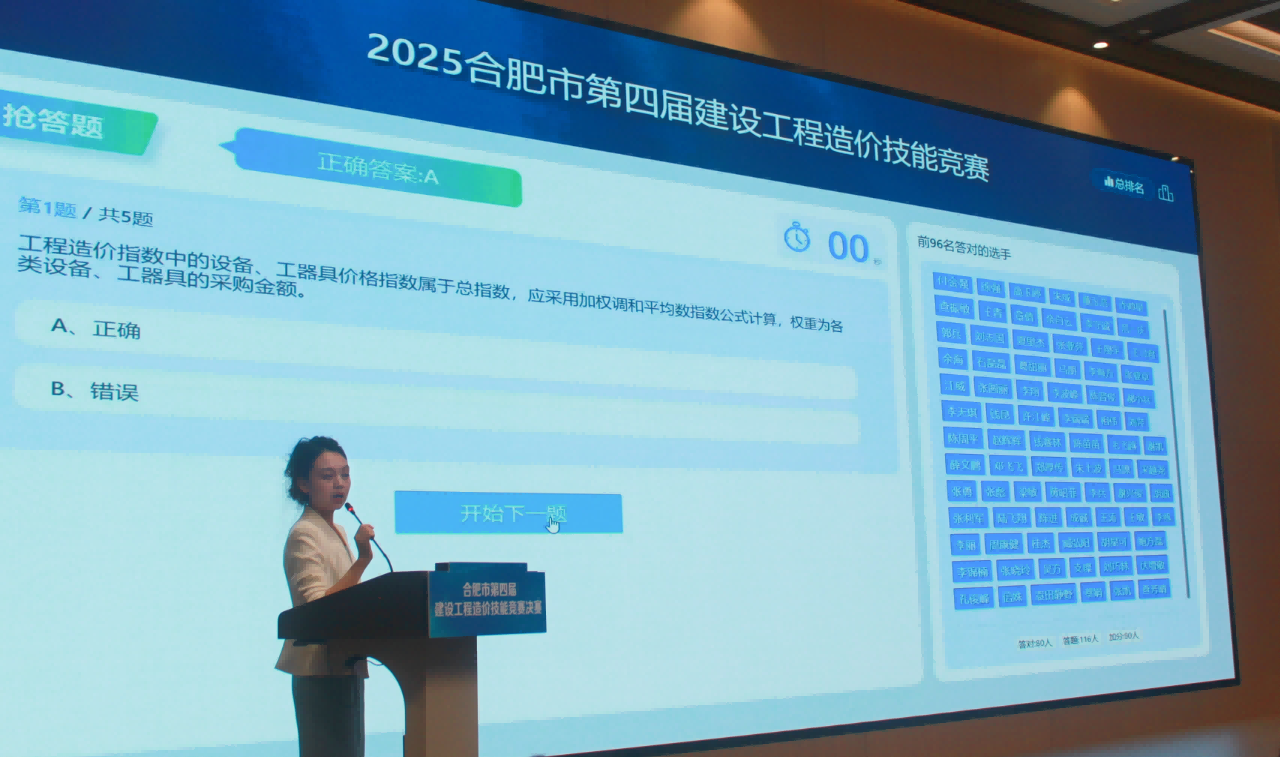 2025年9月20日,由合肥市城乡建设局主办,合肥市城乡建设局工会、合肥市建筑市场监督管理处、合肥市建设工程造价协会共同承办,广联达科技股份有限公司安徽分公司、品茗科技股份有限公司协办的合肥市第四届建设工程造价技能竞赛决赛,在安徽省招标集团股份有限公司三楼主会场成功举办。本次竞赛还得到了安徽省招标集团股份有限公司、安徽安天利信工程管理股份有限公司的大力支持。