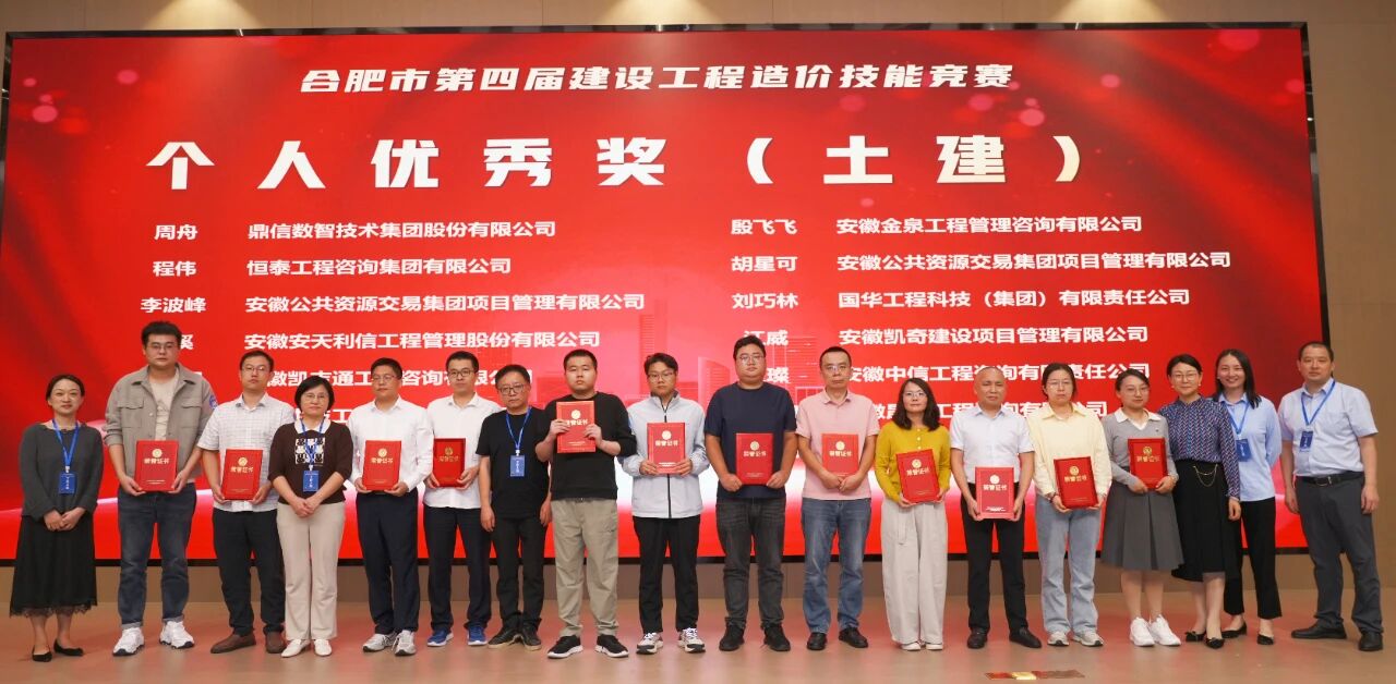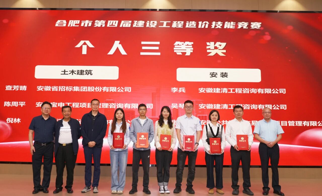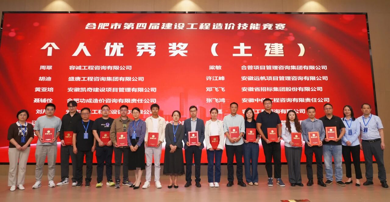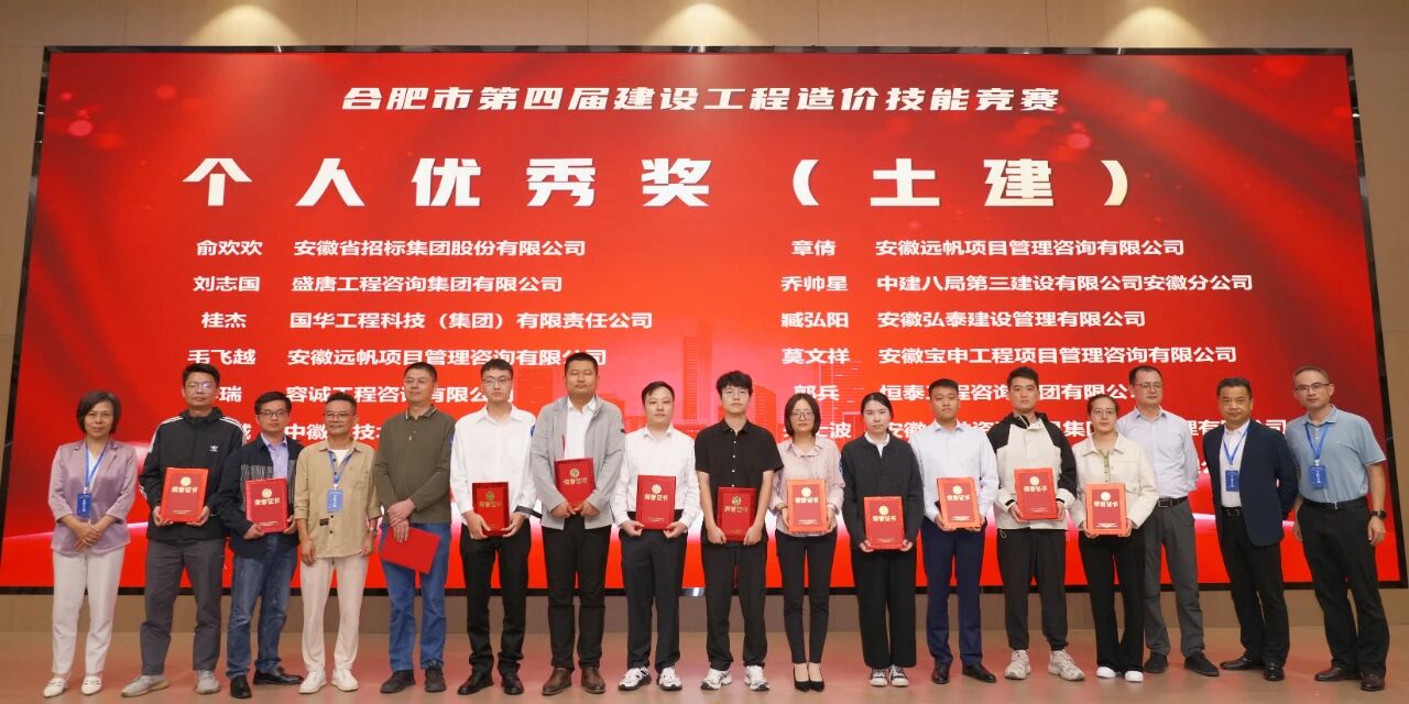 与会领导为获奖选手和单位颁发了荣誉证书。接下来,24名优胜选手(土建16名、安装8名)将通过进一步选拔,组成合肥市代表队,于十月下旬参加全省住房城乡建设系统2025年工程造价技能竞赛。