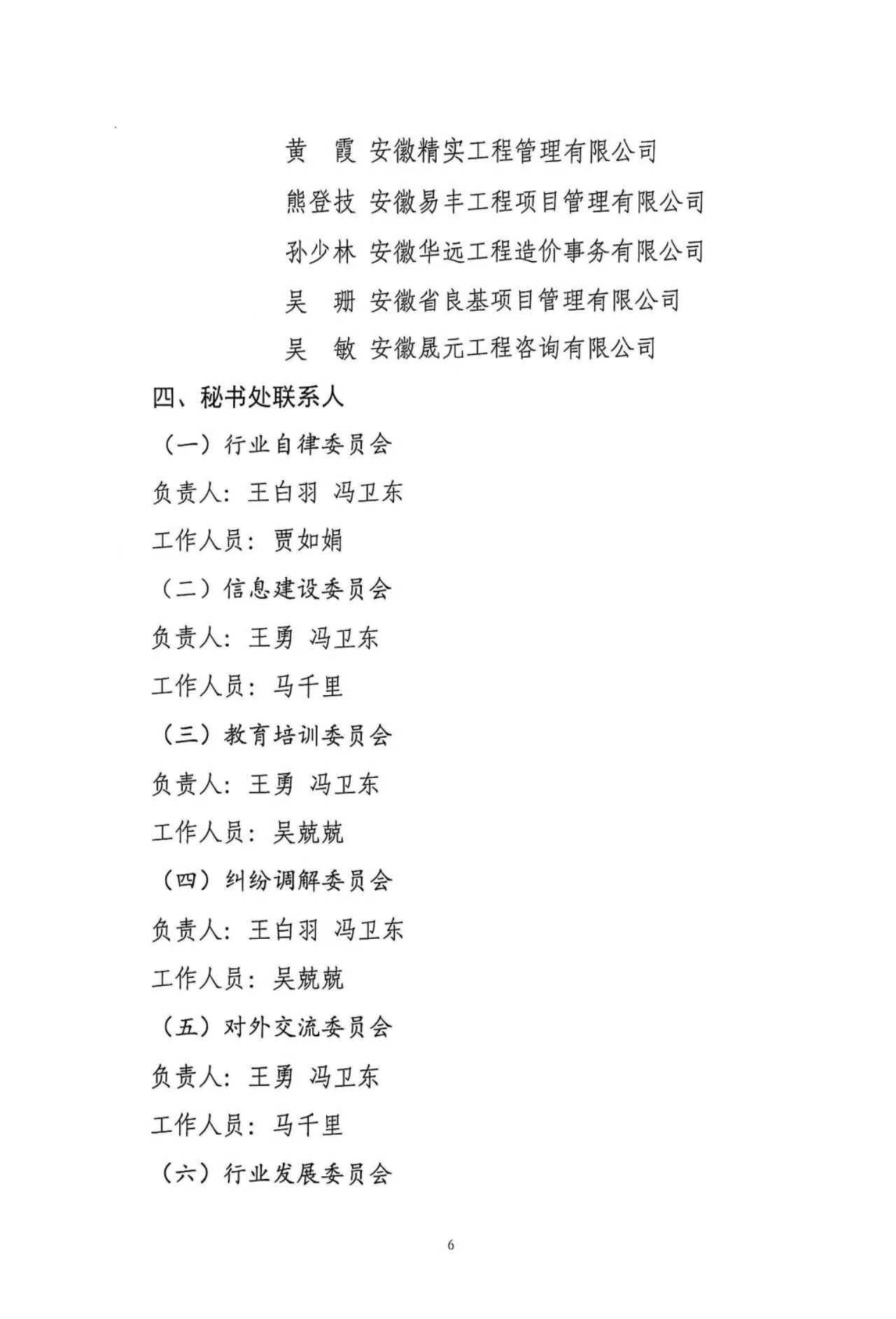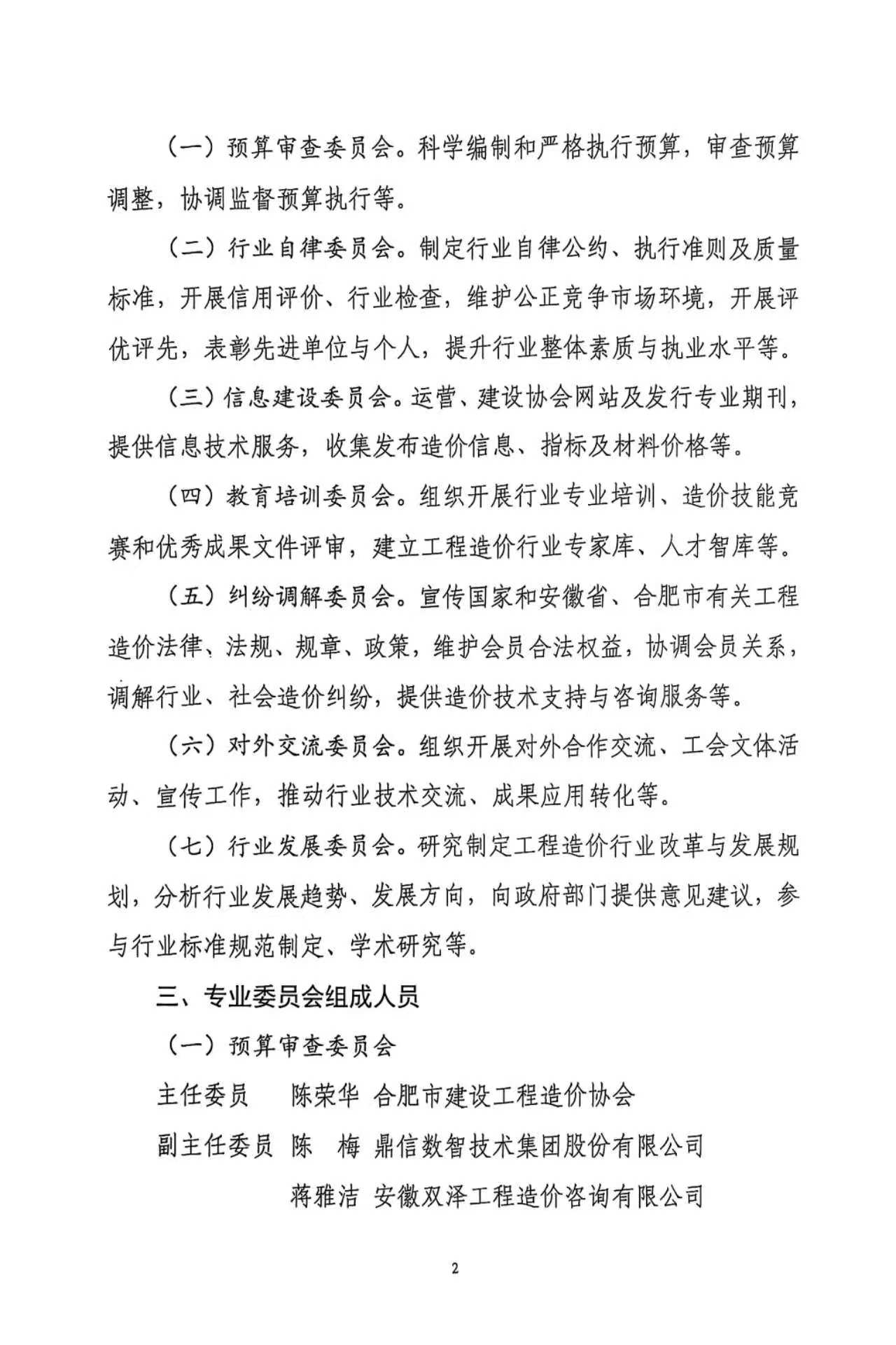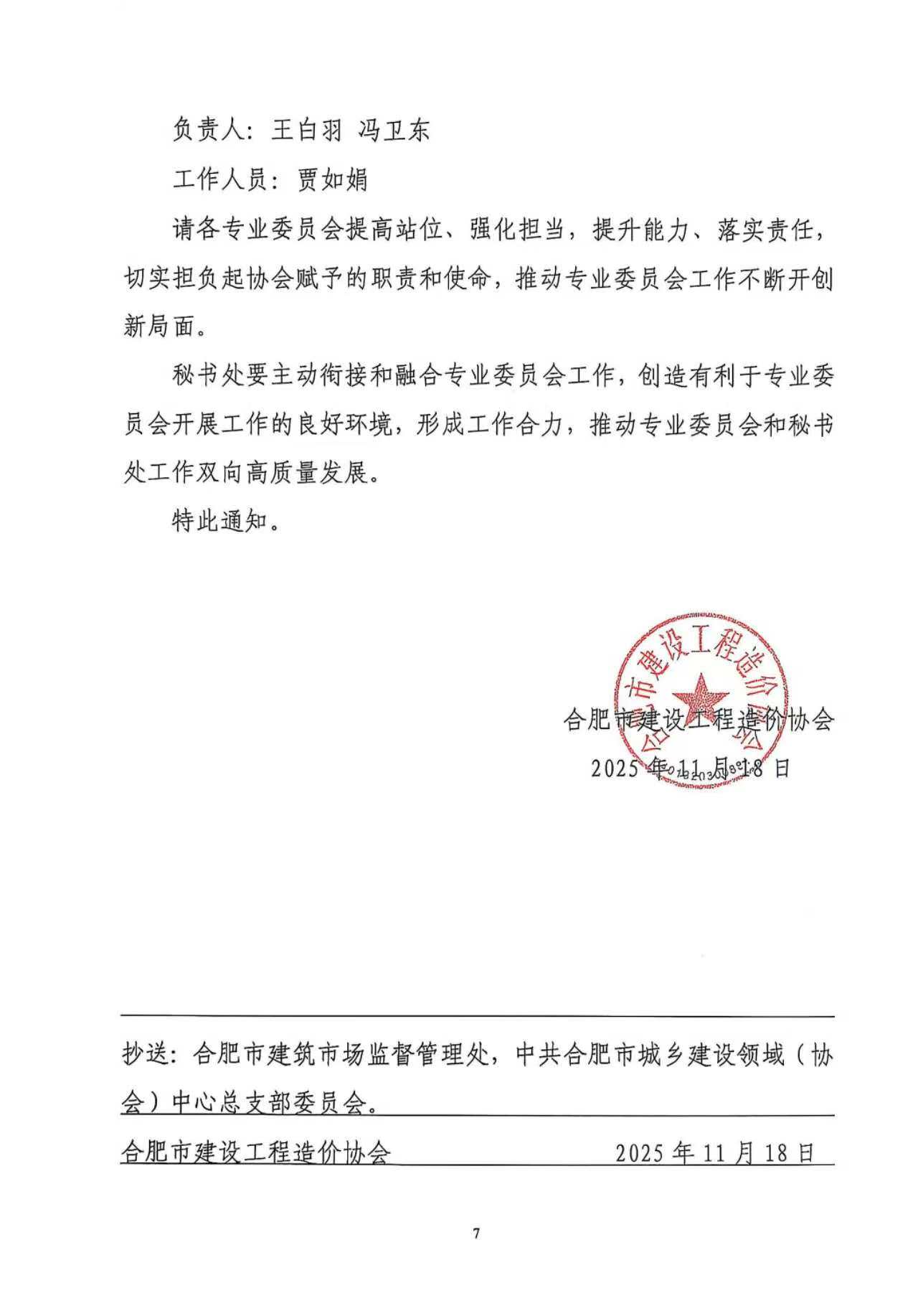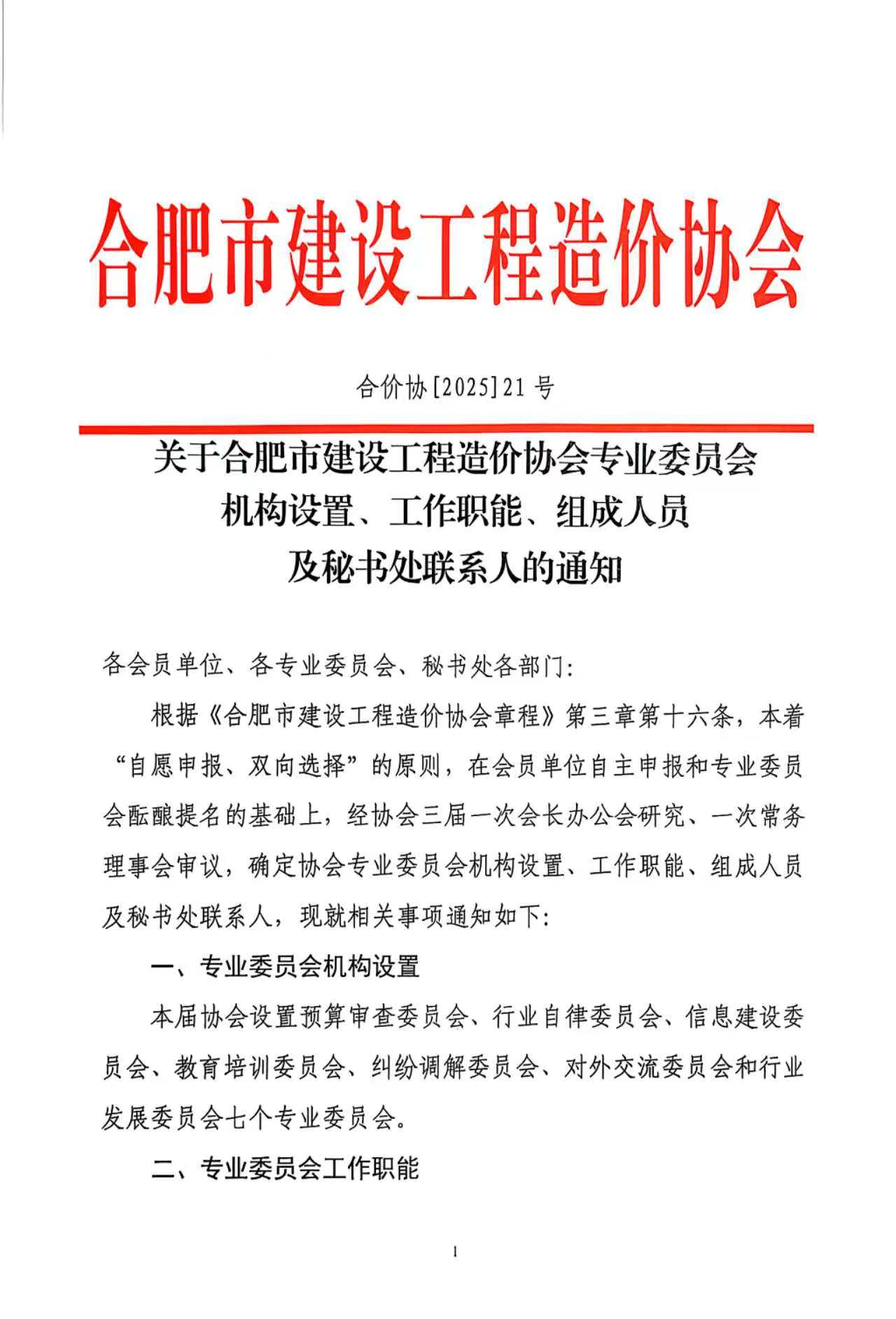 关于合肥市建设工程造价协会专业委员会机构设置、工作职能、组成人员记秘书处联系人的通知