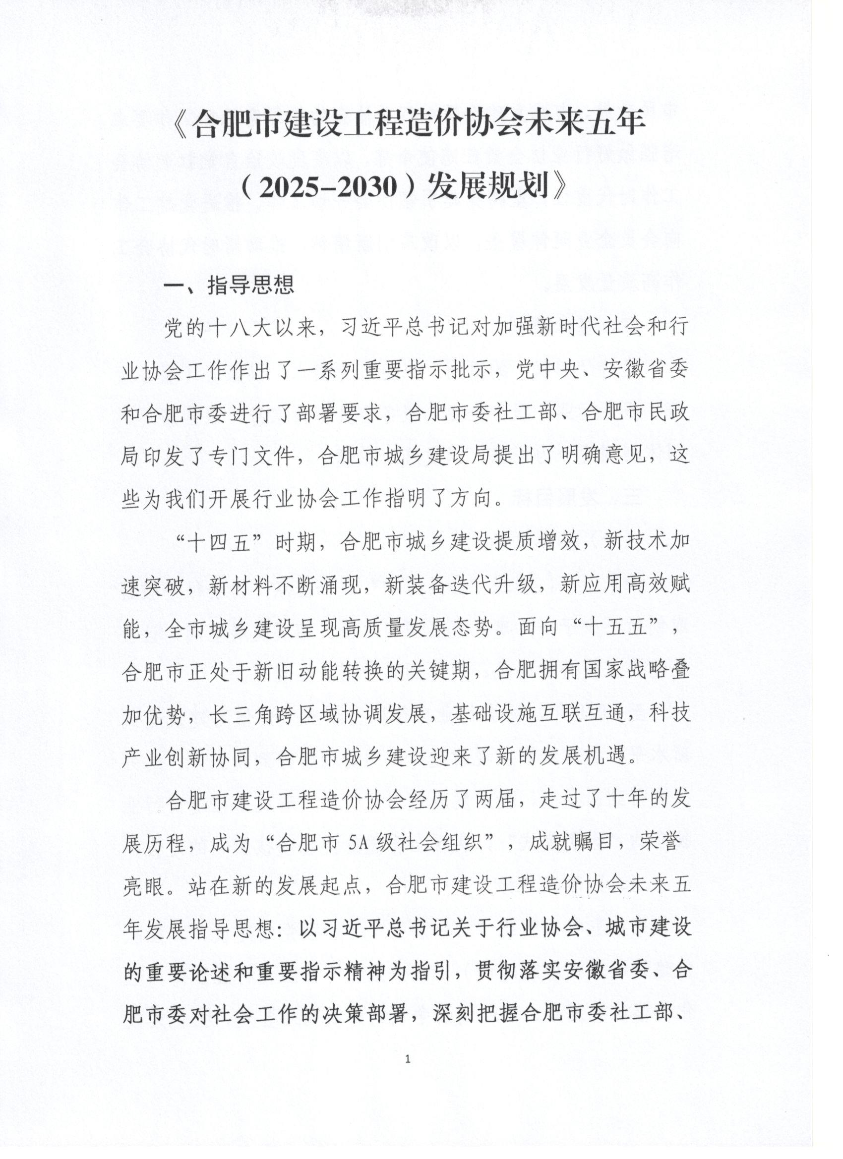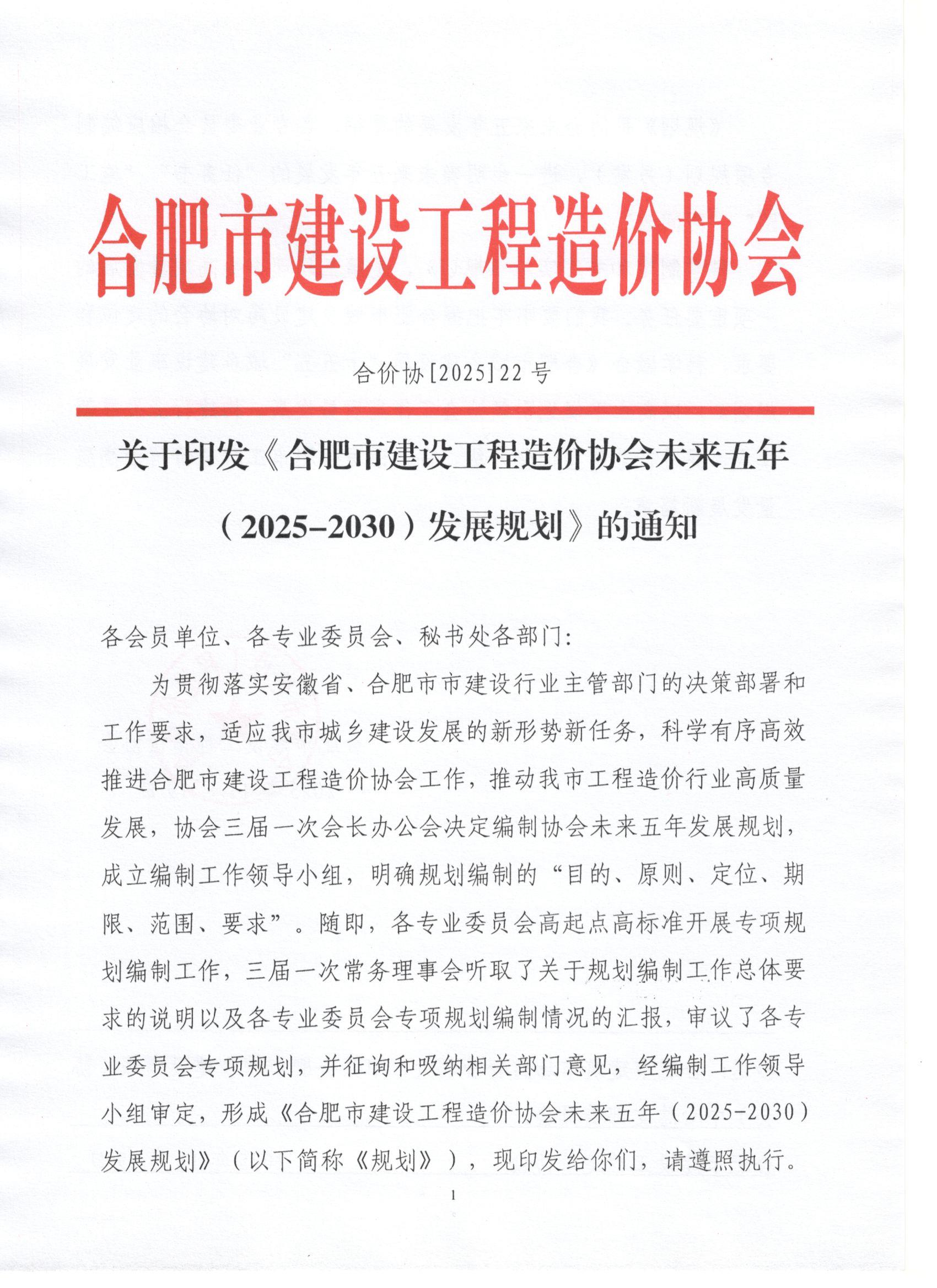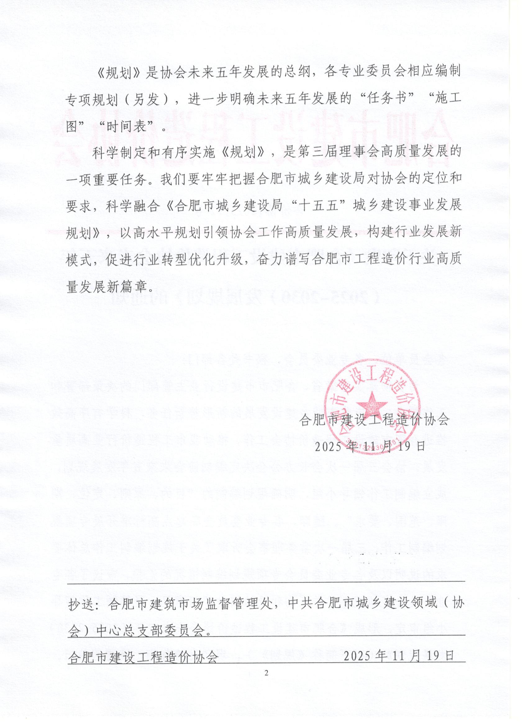 关于印发《合肥市建设工程造价协会未来五年(2025-2030)发展规划》的通知