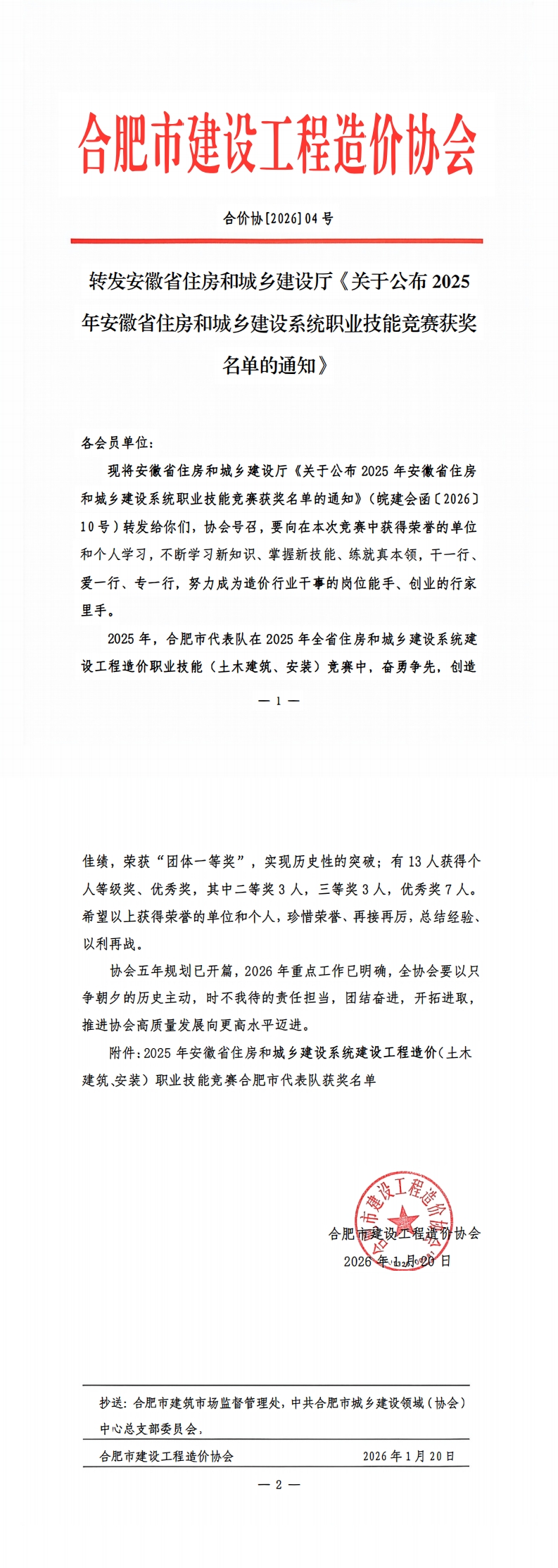 转发安徽省住房和城乡建设厅《关于公布2025年安徽省住房和城乡建设系统职业技能竞赛获奖名单的通知》
