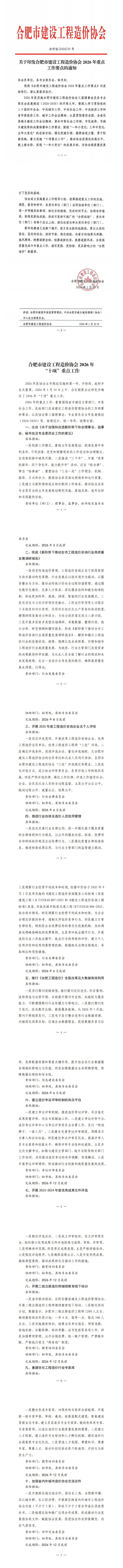 关于印发合肥市建设工程造价协会2026年重点工作要点的通知