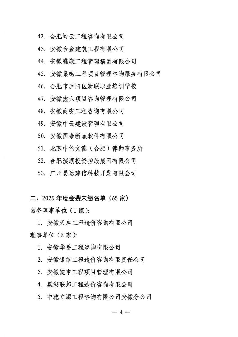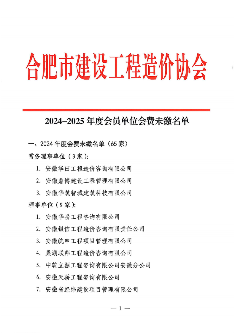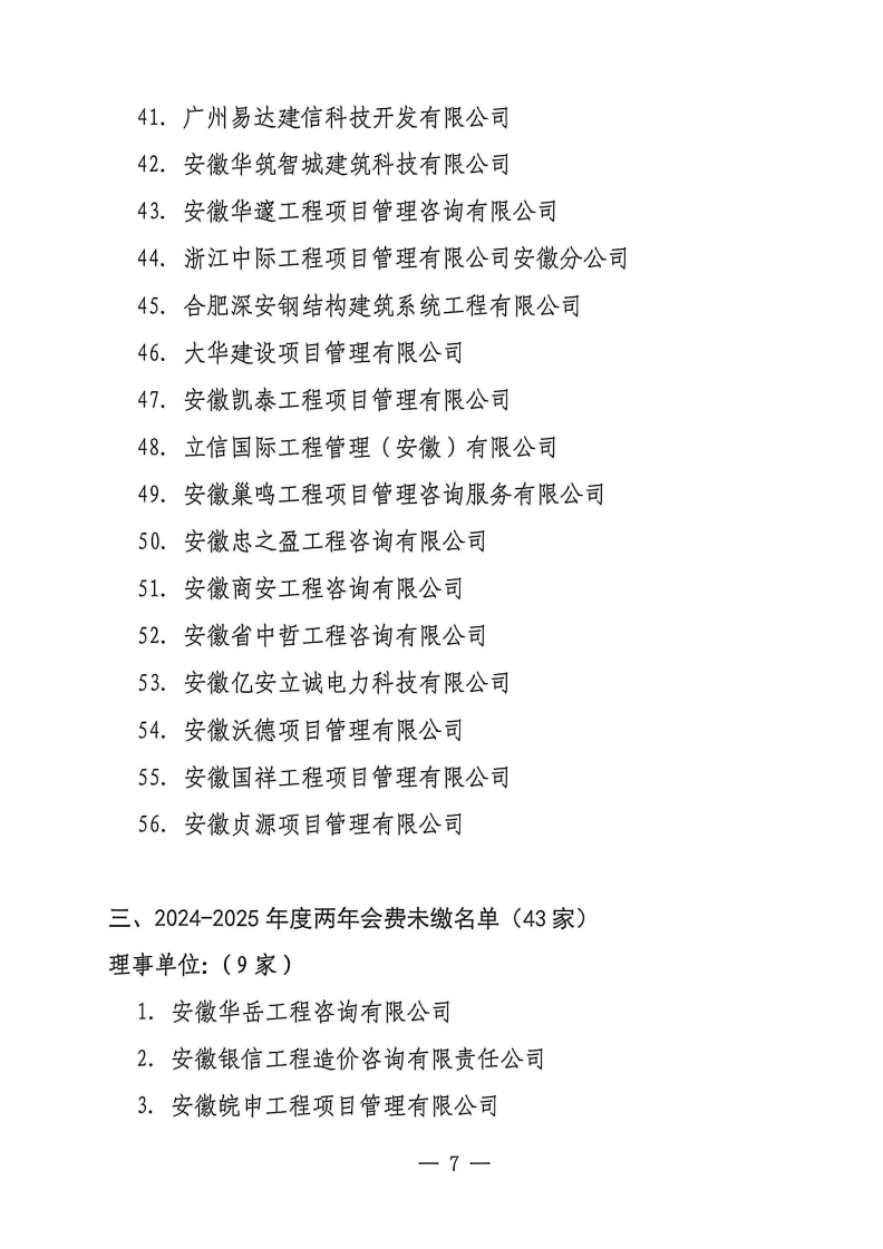 2024-2025年度会员单位会费未缴名单