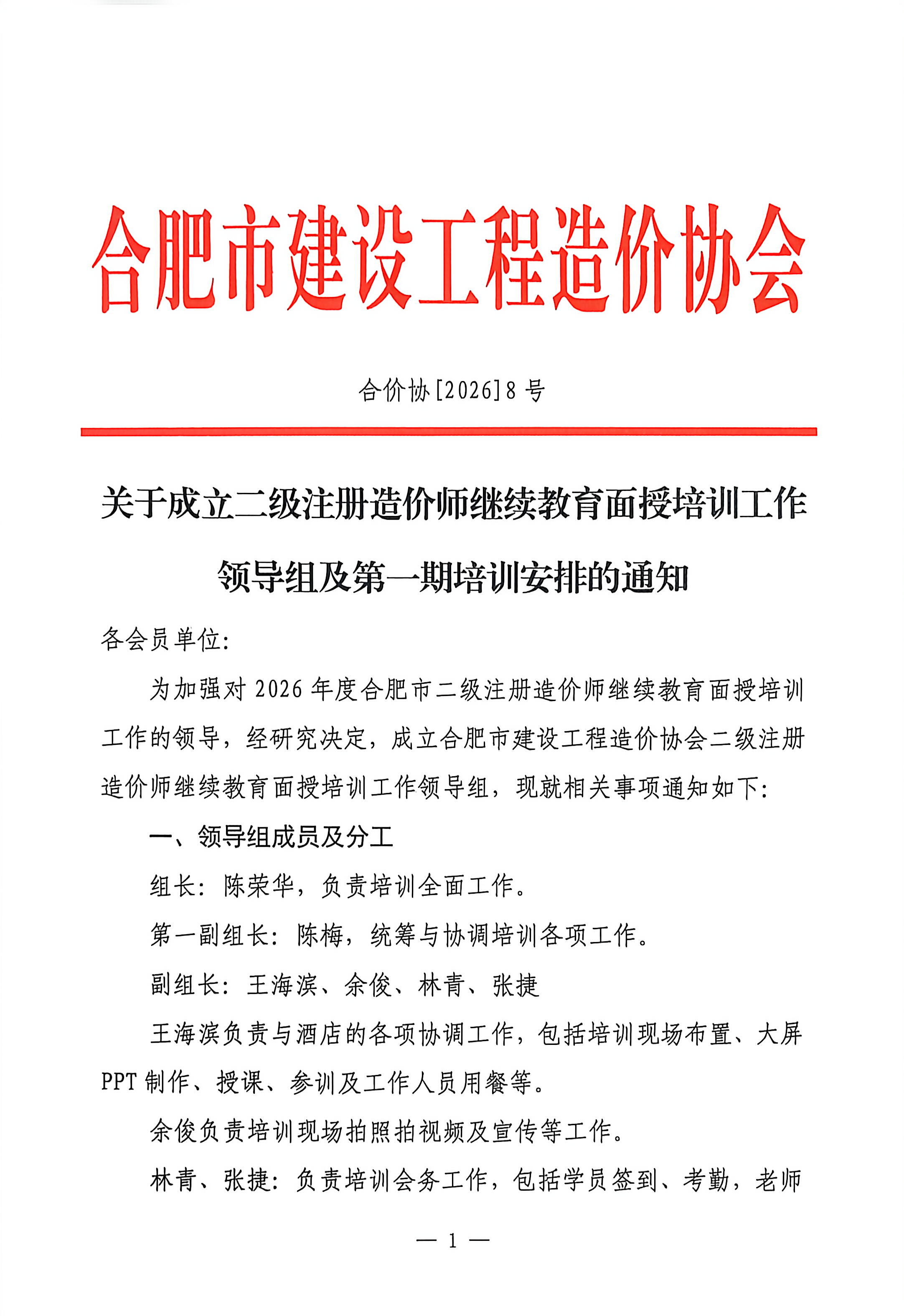 关于成立二级注册造价师继续教育面授培训工作领导组及第一期培训安排的通知